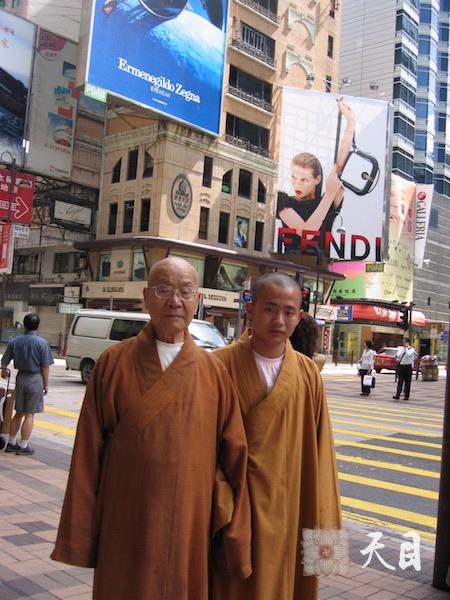 2006年5月9日,师公戒全长老和侍者道缘法师在香港尖沙咀东街拍。
