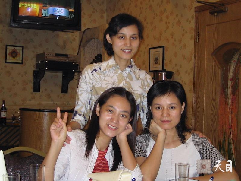 2004年8月28日,邹宜均(出家前的果实法师)在深圳唐宫庆祝三姐邹芷均考取博士的宴席上,和大姐邹宛均三姐邹芷均合影。