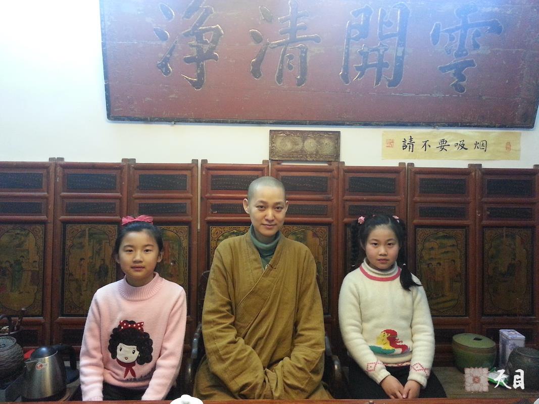 图为果实法师和明阅、子涵的合影。