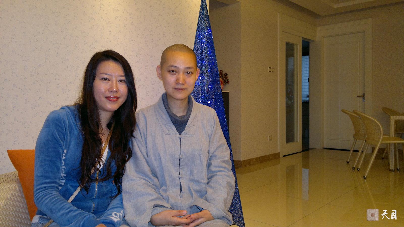 图一、二:果实法师和张雯钧在广州尚东宏御公寓客厅的合影;