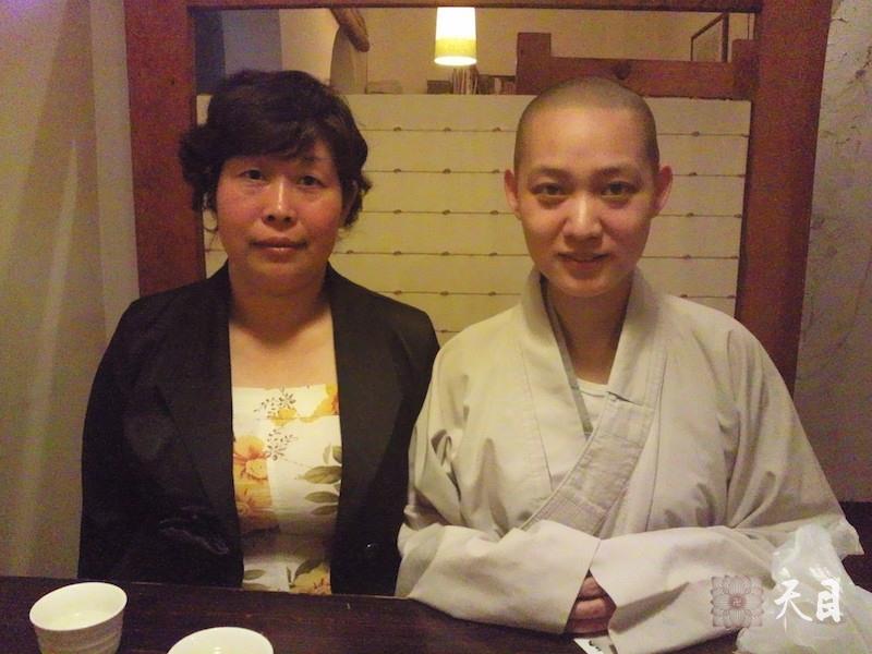 图为果实法师和常阳居士在上海吉祥草素食馆合影。