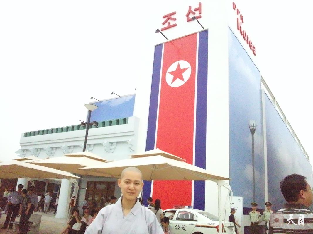 20100526果实法师跟随恩师圣观法师游览上海世博会朝鲜馆常阳居士做护法