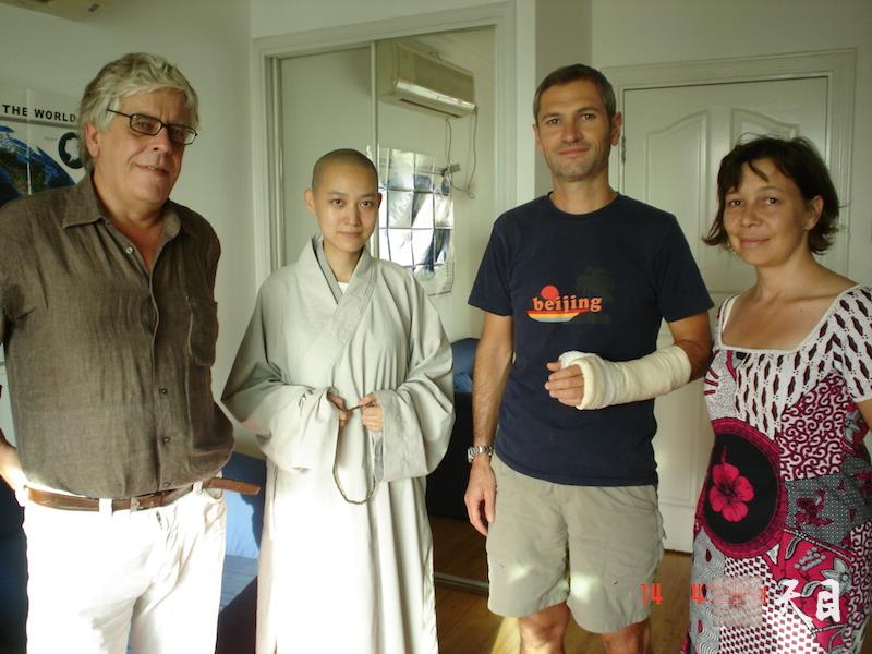 20090914果实法师与纪录片《被封闭的记忆》的剪辑师,还有影片的制作公司--法国光速制片公司的老板,其他记者在北京公司的办公室见面、合影。