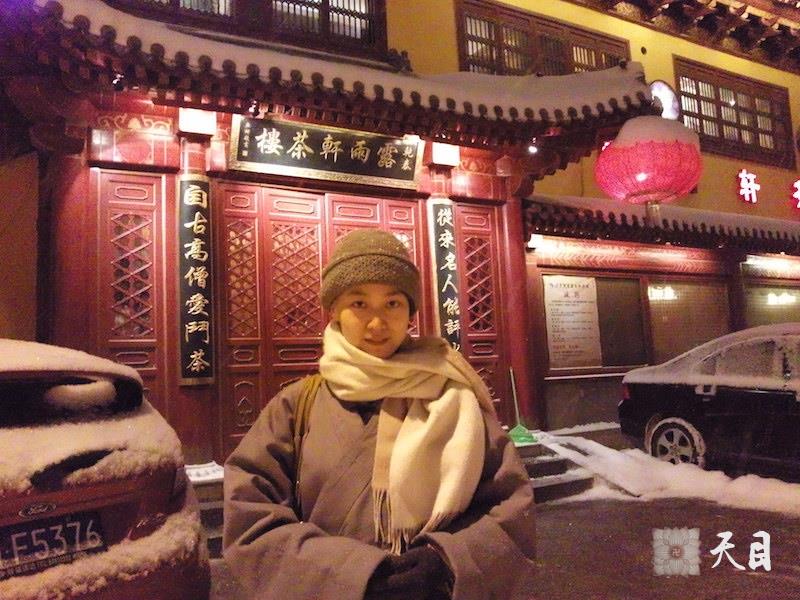 20100103果实法师应张凤芹居士供养露雨轩茶馆,在大雪天里出门。