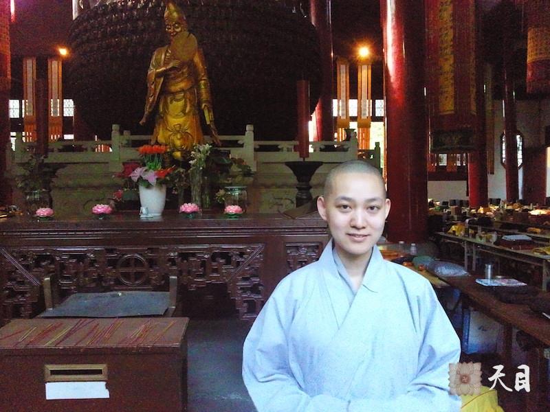 20100507果实法师在杭州净慈寺参学,常阳居士做护法,照片摄于杭州净慈寺大殿内济公像前。