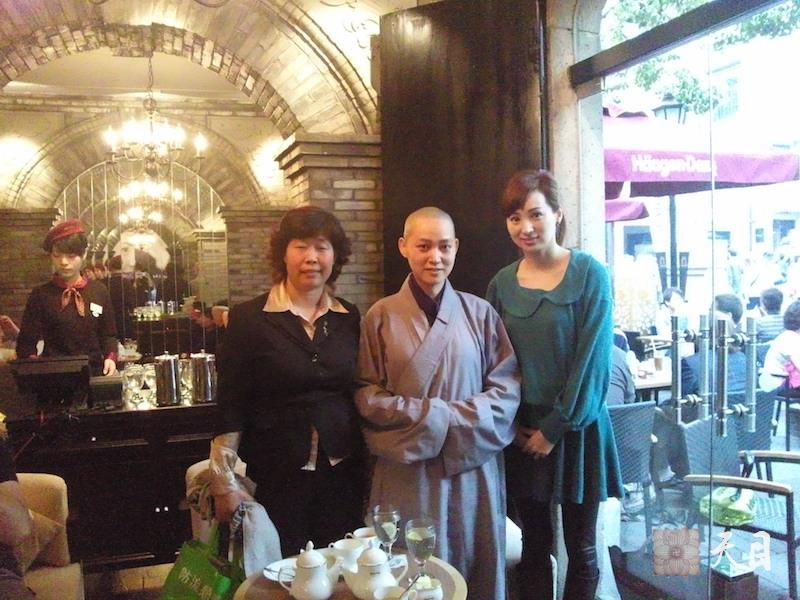 20100515果实法师和1991年亚洲小姐冠军罗霖女士在上海新天地哈根达斯合影常阳居士做护法