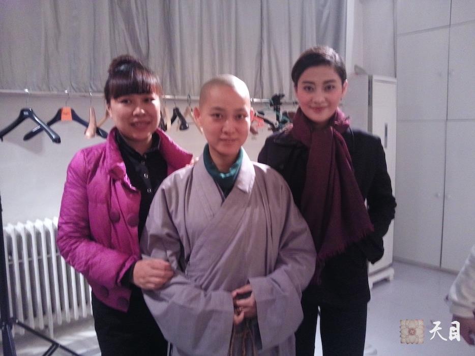 图为果实法师和果然居士、演员梅婷女士在北京三里屯摄影棚的合影。