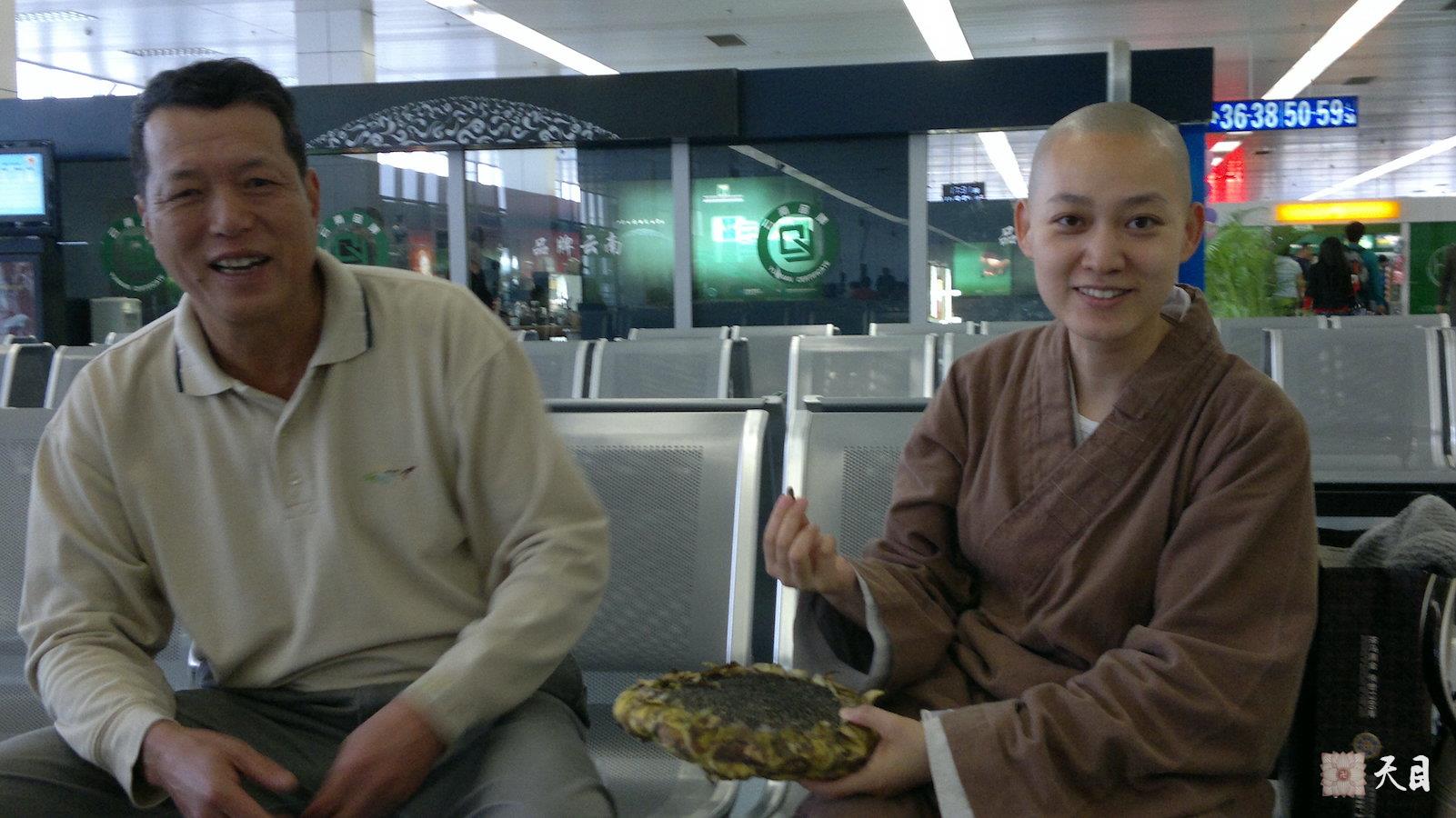 图为果实法师和赵二军汪健莉夫妇分别在昆明机场、西双版纳机场的合影。