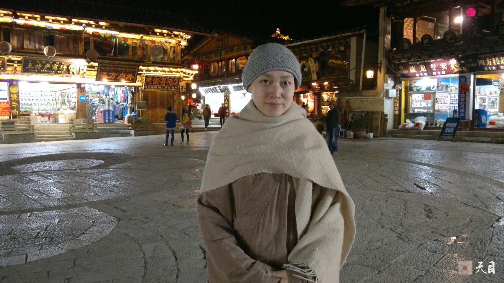 图一:果实法师在云南香格里拉独克宗古城的广场;