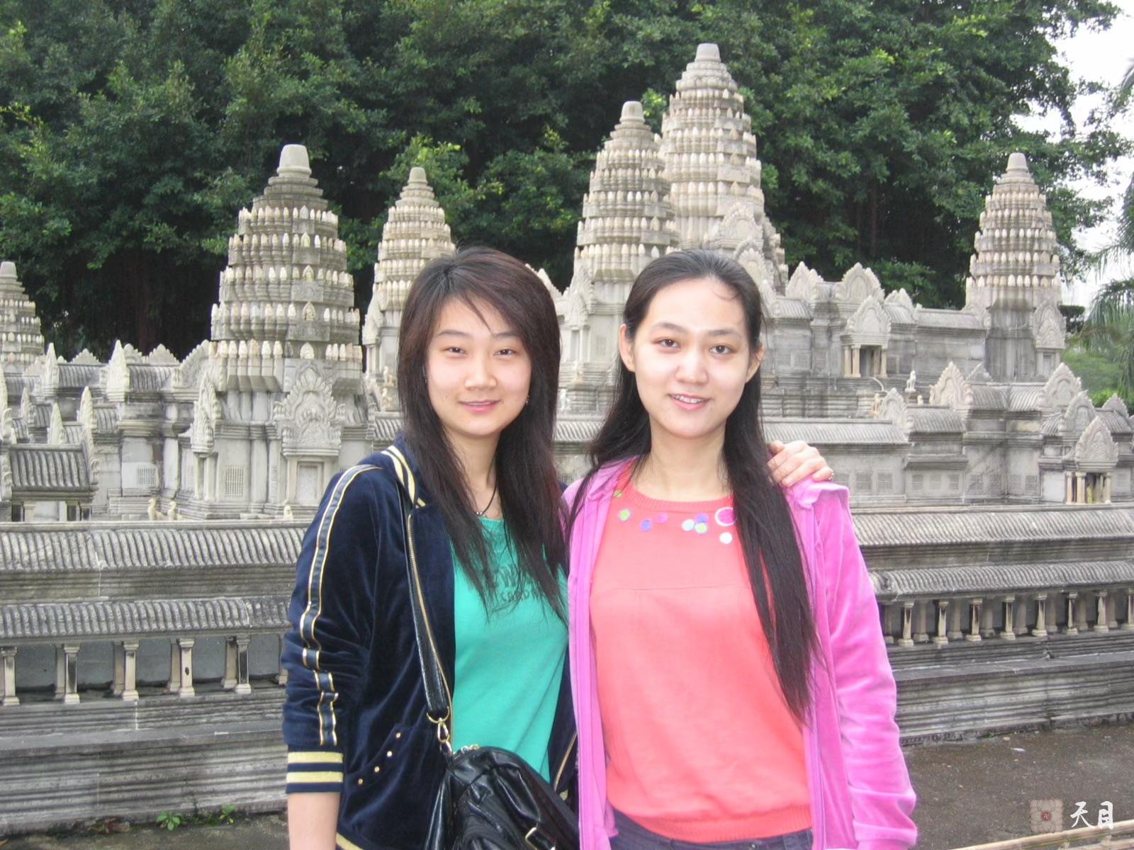 2007年2月19日,果实(出家前的果实法师)居士和果涵居士跟随恩师圣观法师在深圳游览世界之窗。