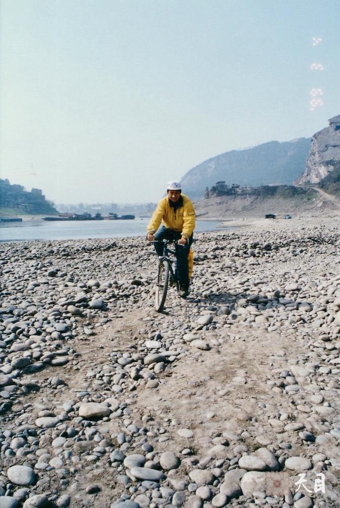 这是19990304徐志强(出家前的圣观法师)骑至长江边滩涂对环保进行田野调查。