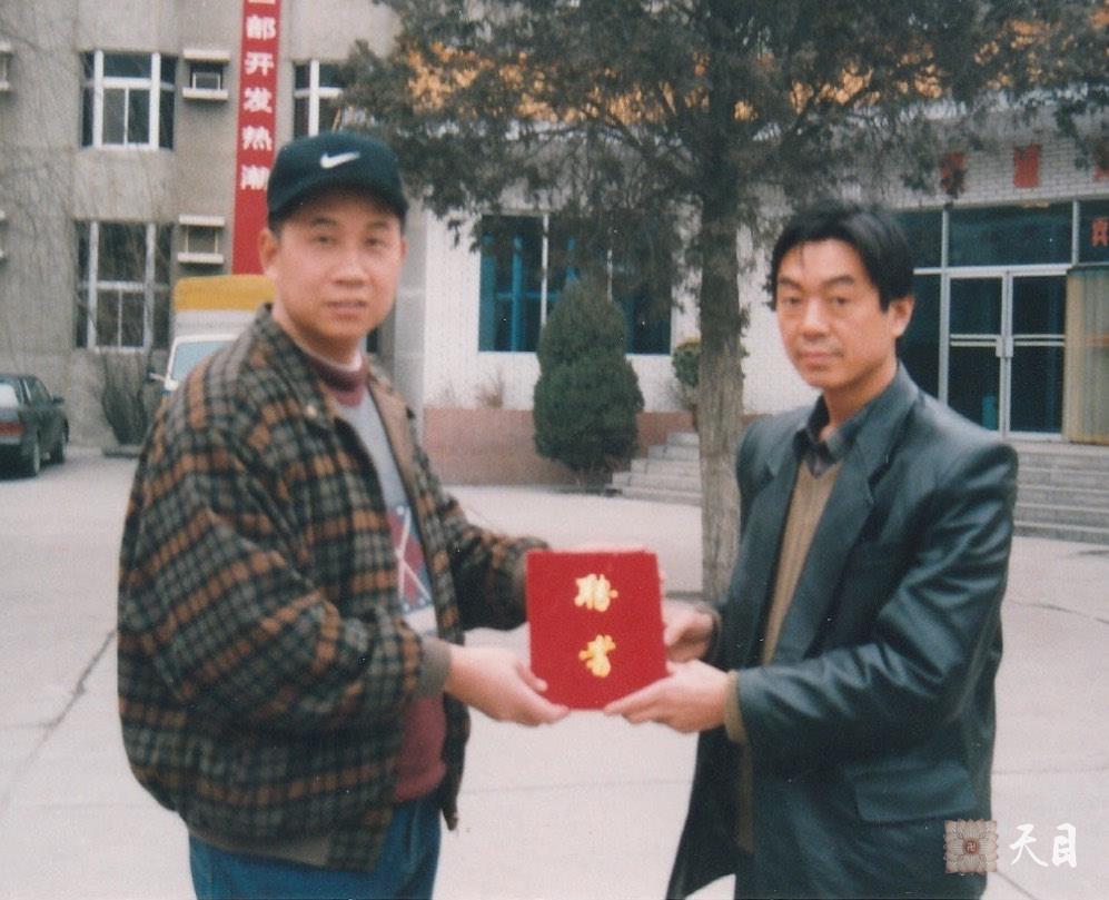 2000年初春徐志强(出家前的圣观法师)接受黄帝陵祭陵办主任程良宝颁发的聘书