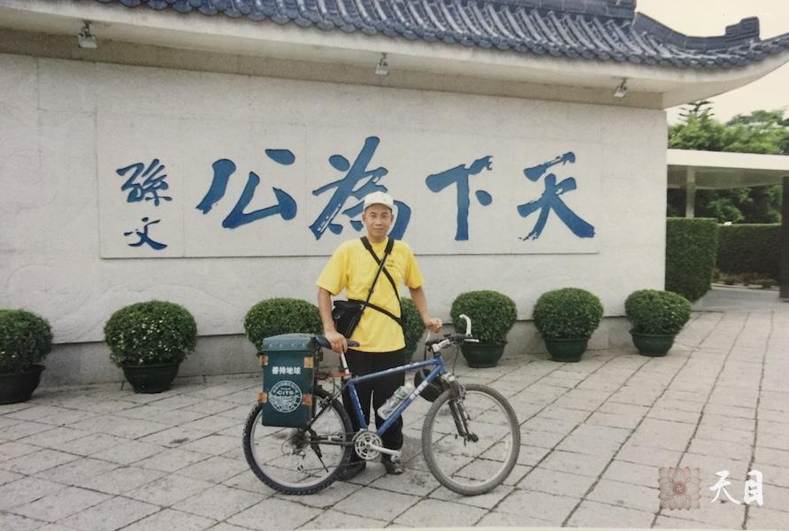 这是1999年7月间,徐志强(出家前的圣观法师)骑行至广东中山翠亨村孙中山故居纪念馆,和他骑行的自行车留影纪念。