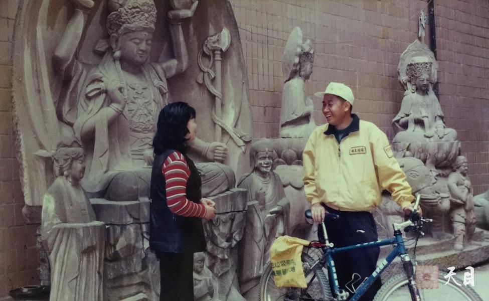 这是1999年3月12日,正好是植树节,徐志强(出家前的圣观法师)骑行至自己的祖籍重庆大足,接受当地媒体采访。