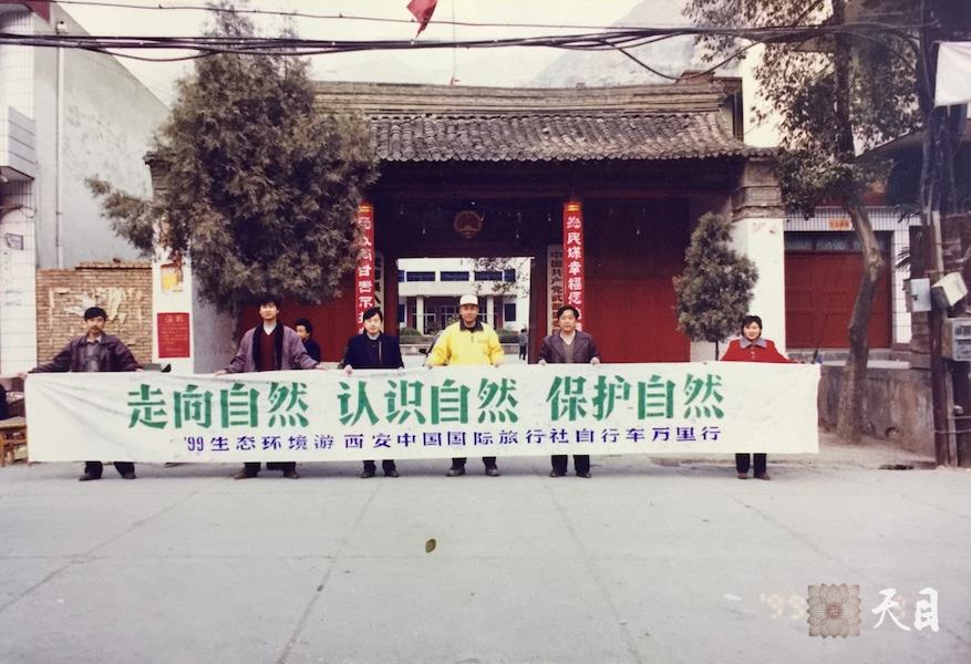 当地官员在武都县政府前和徐志强(出家前的圣观法师)共同展开“走向自然、认识自然、保护自然”的10横幅、合影。这条横幅是徐志强(出家前的圣观法师)此次单骑万里行出发前预先准备的,每到一地,徐志强(出家前的圣观法师)都先和当地旅游部门一起设立宣传站,给民众讲解环保知识,请大家在这写着“走向自然、认识自然、保护自然”的横幅上签名。