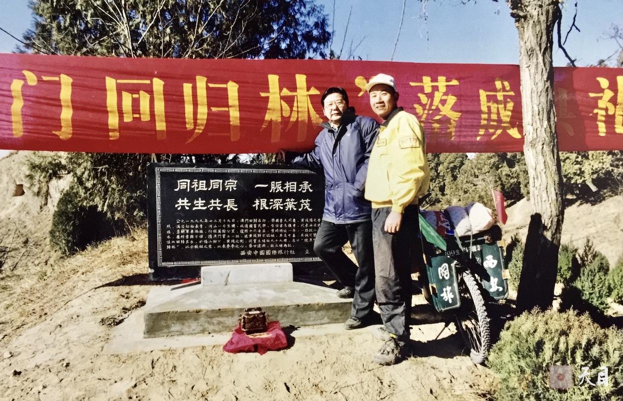 这是1999年12月19日,也是澳门回归的前一天,徐志强(出家前的圣观法师)自行车单骑万里行凯旋黄帝陵,“庆澳门回归,迎澳土归宗”活动在省旅游局、陕旅集团、西安国旅精心组织下隆重举行,徐志强(出家前的圣观法师)将一抔象征澳门与大陆同祖同宗、一脉相承的澳门土敬献于华夏始祖陵前,并同与会人士在“黄陵故土园”内植下象征九九归一的99棵柏树,以表赤子之心。