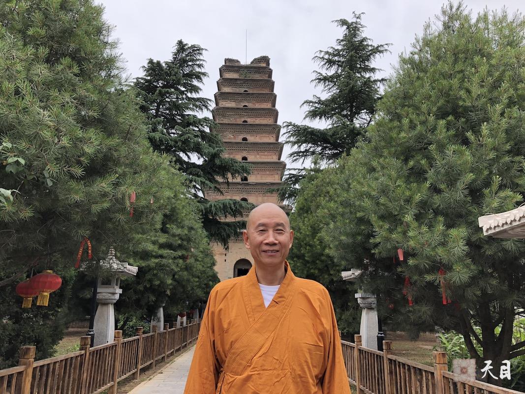 2018年5月28日,恩师圣观法师带领果实法师等弟子在西安净土宗祖庭香积寺参学。