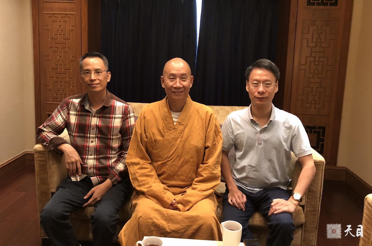 图为恩师圣观法师给心敬居士、心宁居士、果静居士开示时的情景合影。