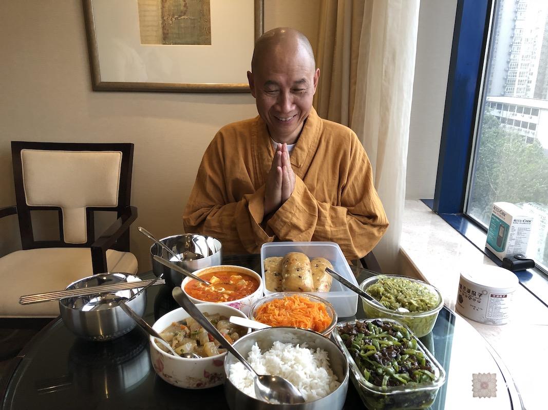 2018年6月3日、7日,恩师圣观法师在西安喜来登道场期间,果音居士前来亲近恩师圣观法师,并带上亲自下厨做的斋饭供养恩师圣观法师,一起给恩师圣观法师祈福!