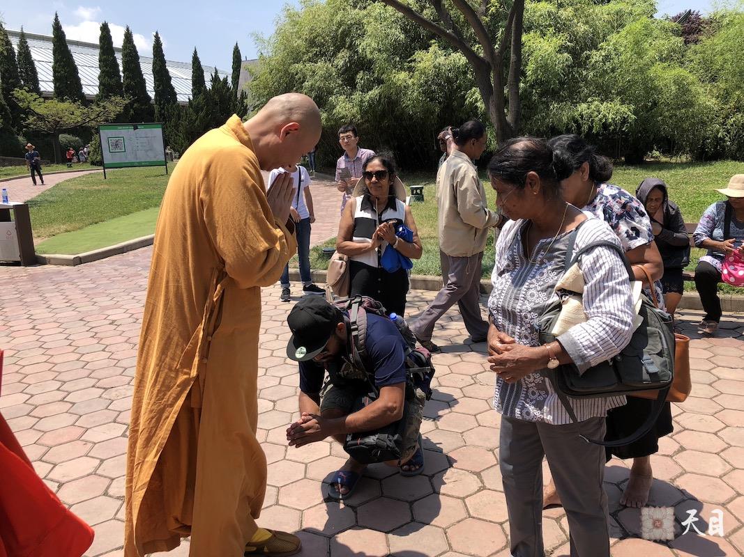 图为恩师圣观法师带领果实法师、常香法师、心一居士、果珍居士、常彩居士、果音居士、常惠居士、心婵居士等弟子二号坑展厅前遇到来自斯里兰卡的法师信众,恩师圣观法师与斯里兰卡法师交流、合影,斯里兰卡信众上前以礼佛足的方式向恩师圣观法师顶礼。这也意外地让大家看到南传佛教保持了原始佛教礼佛足的顶礼礼仪,很让人随喜和感动的!