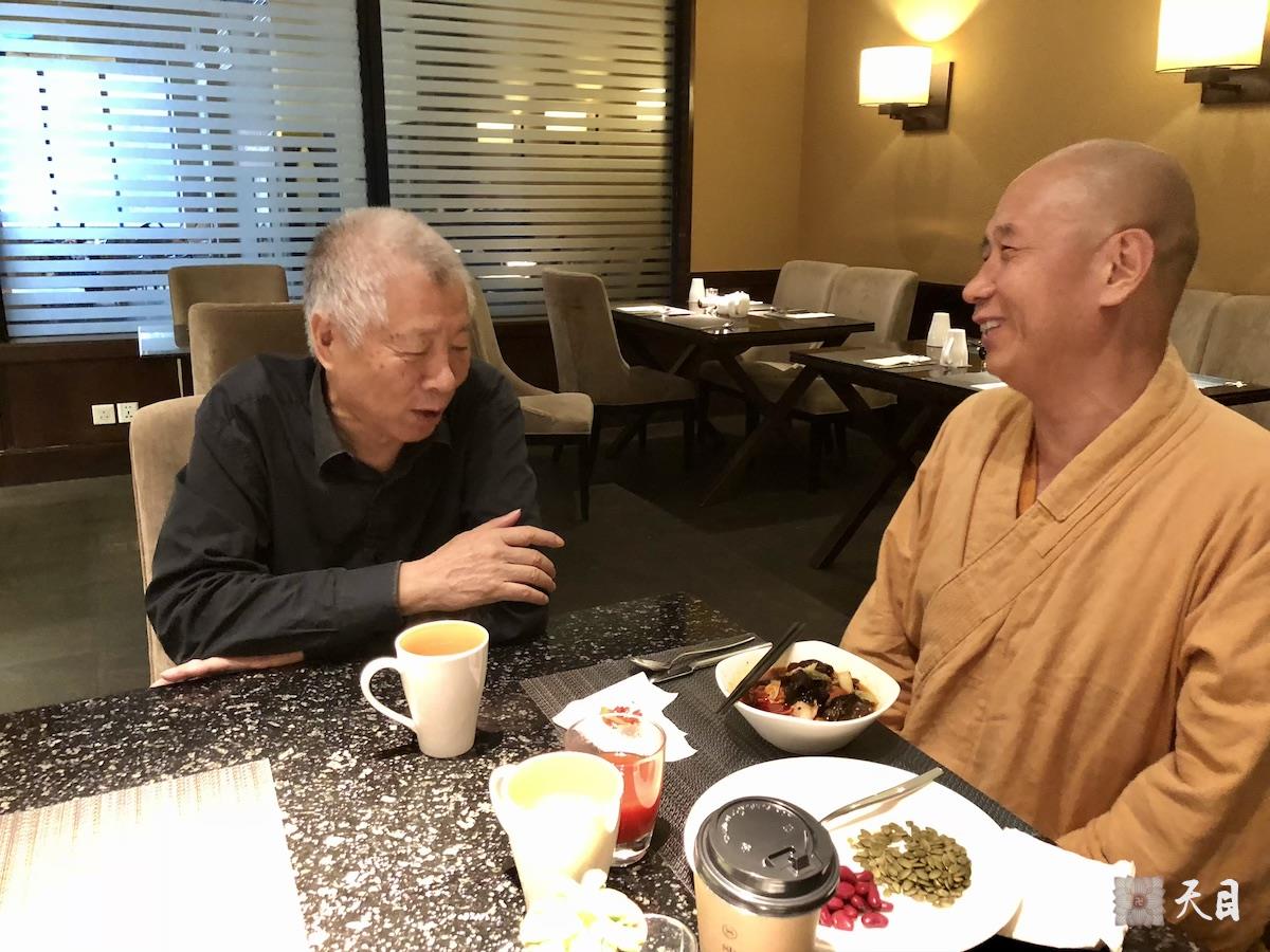 图为恩师圣观法师和蔡文斌在西安喜来登餐厅。