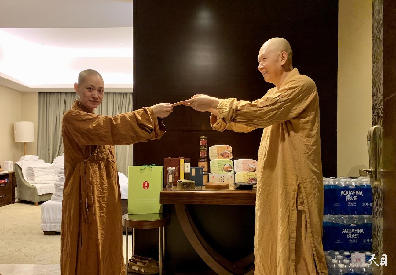果实法师也因为疫情还没结束的缘故,再三叮嘱此次给恩师圣观法师准备的生日净素蛋糕必须都是直接烘焙出来就送给恩师圣观法师的,生日净素蛋糕本身不放冰箱、不添加任何冷链食品包括水果罐头和植物奶油、不写任何祝贺语、不插蜡烛。今天恩师圣观法师收到的生日净素蛋糕有三个,分别是广州粤海喜来登的厨师团队特意给恩师圣观法师制作赠送的鲜橙黑芝麻风味净素蛋糕、贞素股东禅悦素食汤居士的女儿供养恩师圣观法师亲自制作的布朗尼净素蛋糕、贞素股东常耀居士供养恩师圣观法师的广州慧心素食出品的红糖净素蛋糕。