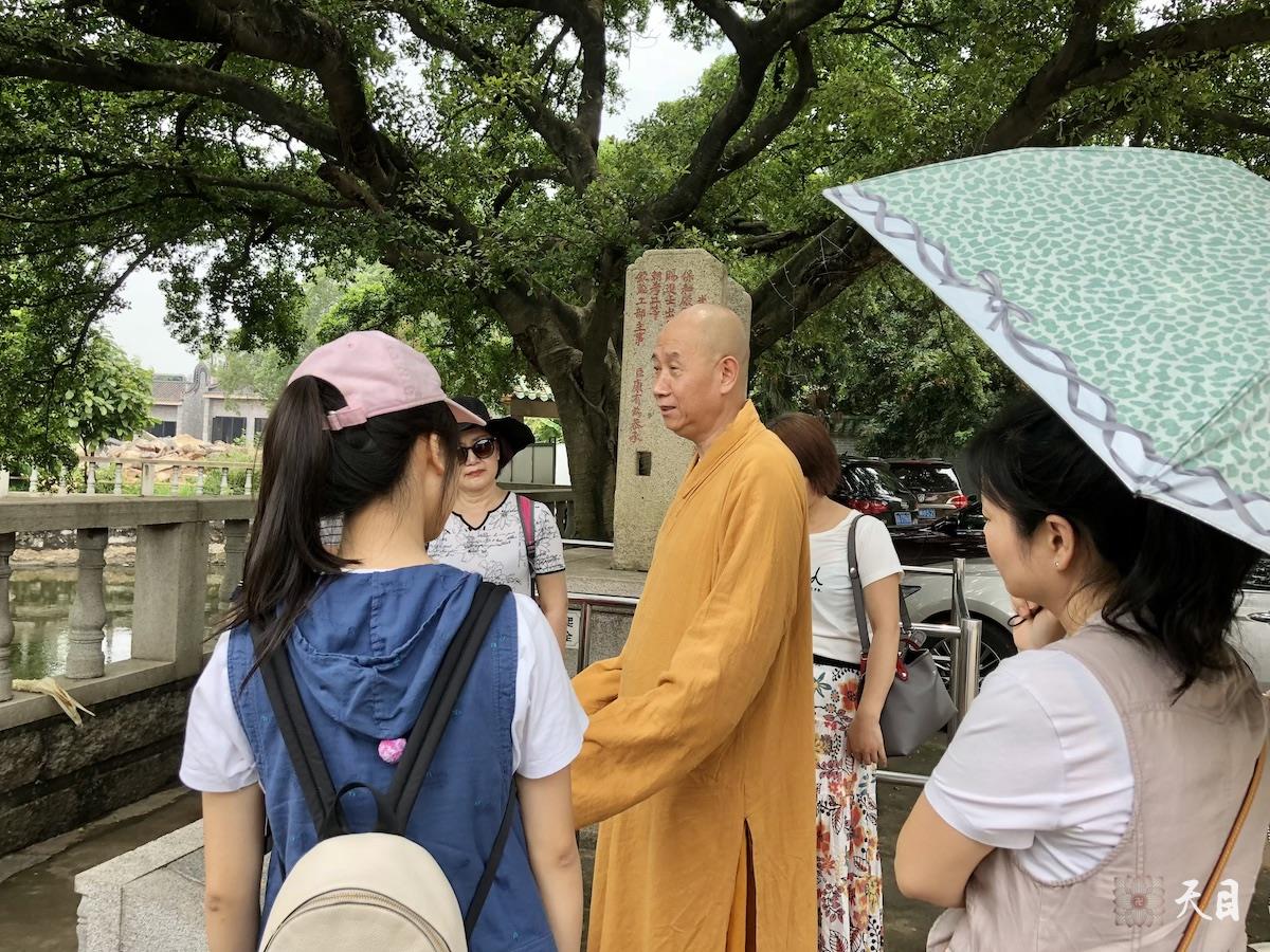 图为恩师圣观法师在康有为故居广场给大家讲解时的情景。