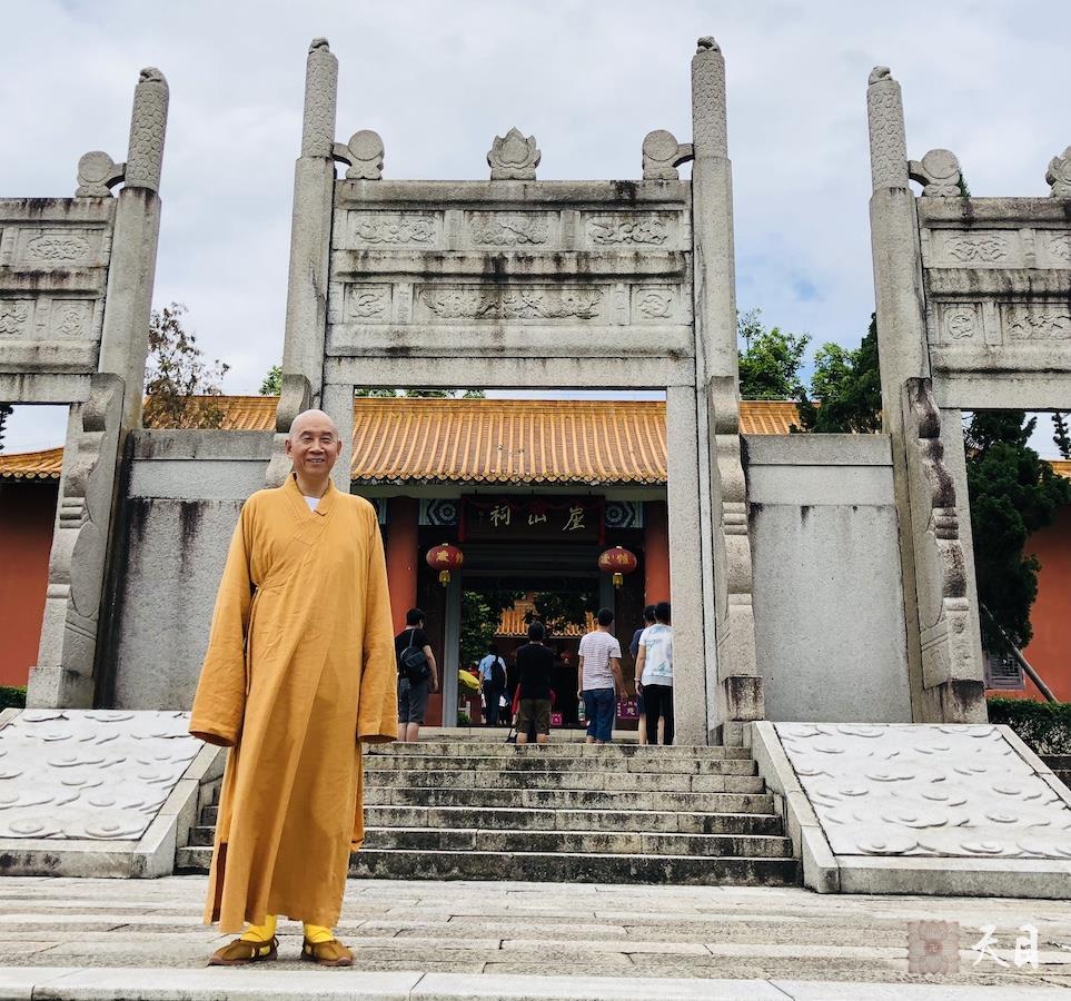 图为恩师圣观法师和果贞居士、心平居士、大安居士崖山祠前留影。