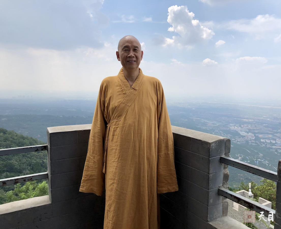 图为恩师圣观法师和弟子们在烽火台上留影。