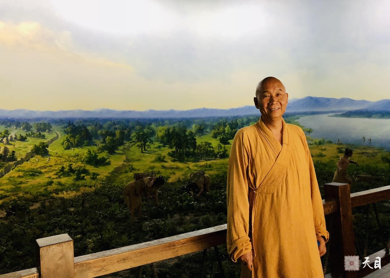 图为恩师圣观法师在辅助展览室留影及给弟子们讲解。