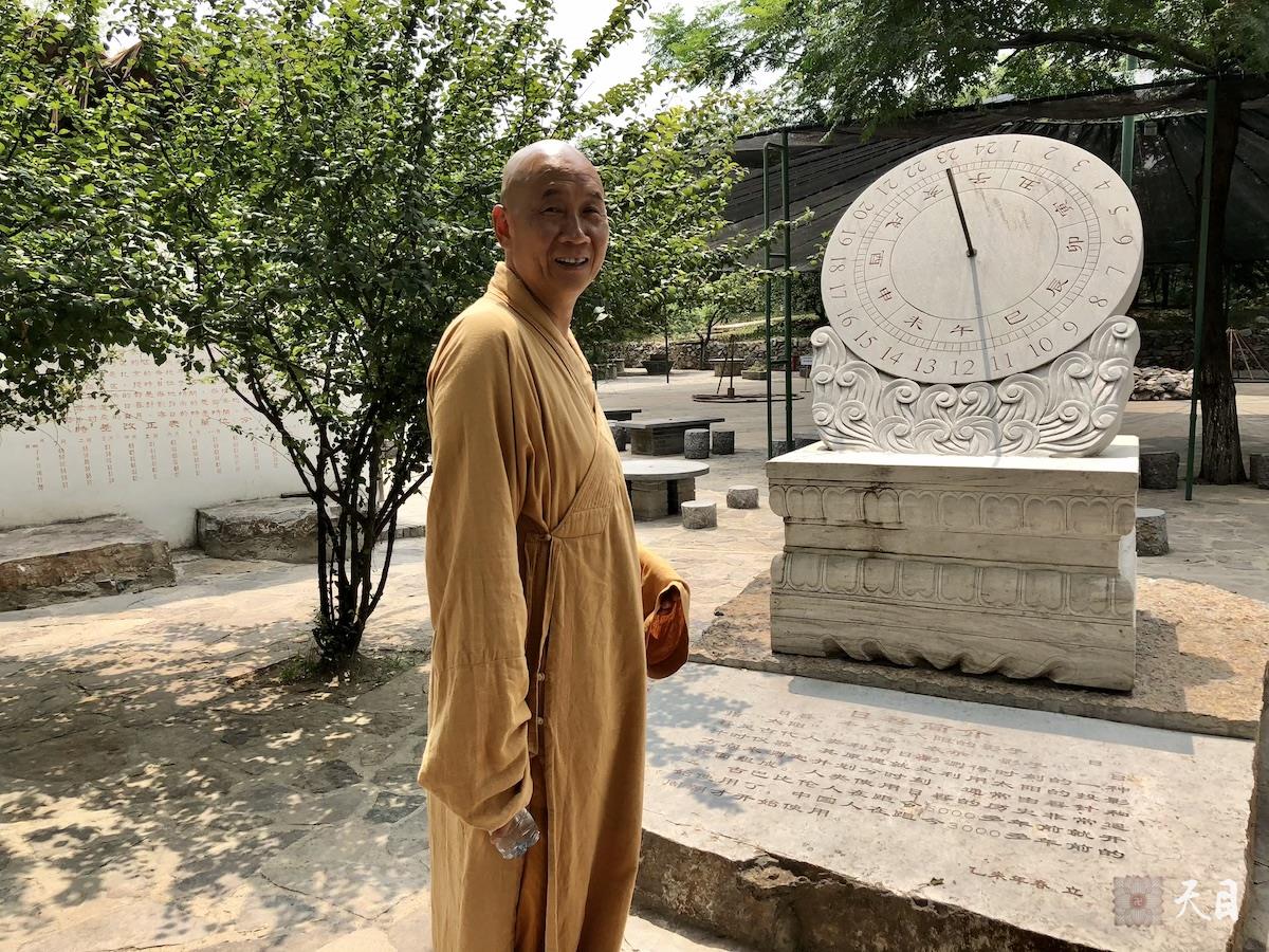 图为恩师圣观法师在日晷前留影。日晷:本义是太阳的影子。“日”指“太阳”,“晷”表示“影子”。日晷是古代人类利用日影测得时刻的一种计时仪器。其原理就是利用太阳的投影方向来测定并划分时刻。通常由晷针和晷面组成。人类使用日晷的历史非常遥远。古巴比伦人在距今6000多年前就开始使用了。中国人在距今3000多年前的周朝才开始使用。