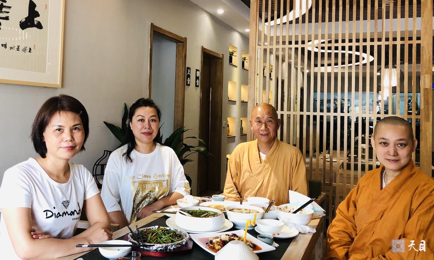 2018年8月15日,恩师圣观法师带领果然居士、常彩居士在西安西绿度母道场藏传格鲁派寺院广仁寺参学,结束后,应果然居士的供养在西安广仁寺对面的天素无界素食馆享用午餐。