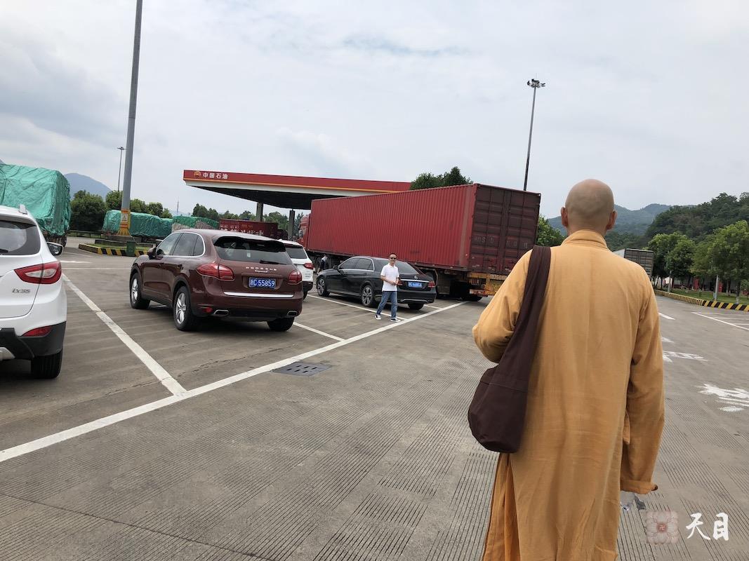 图为恩师圣观法师于途中和弟子们在休息区。