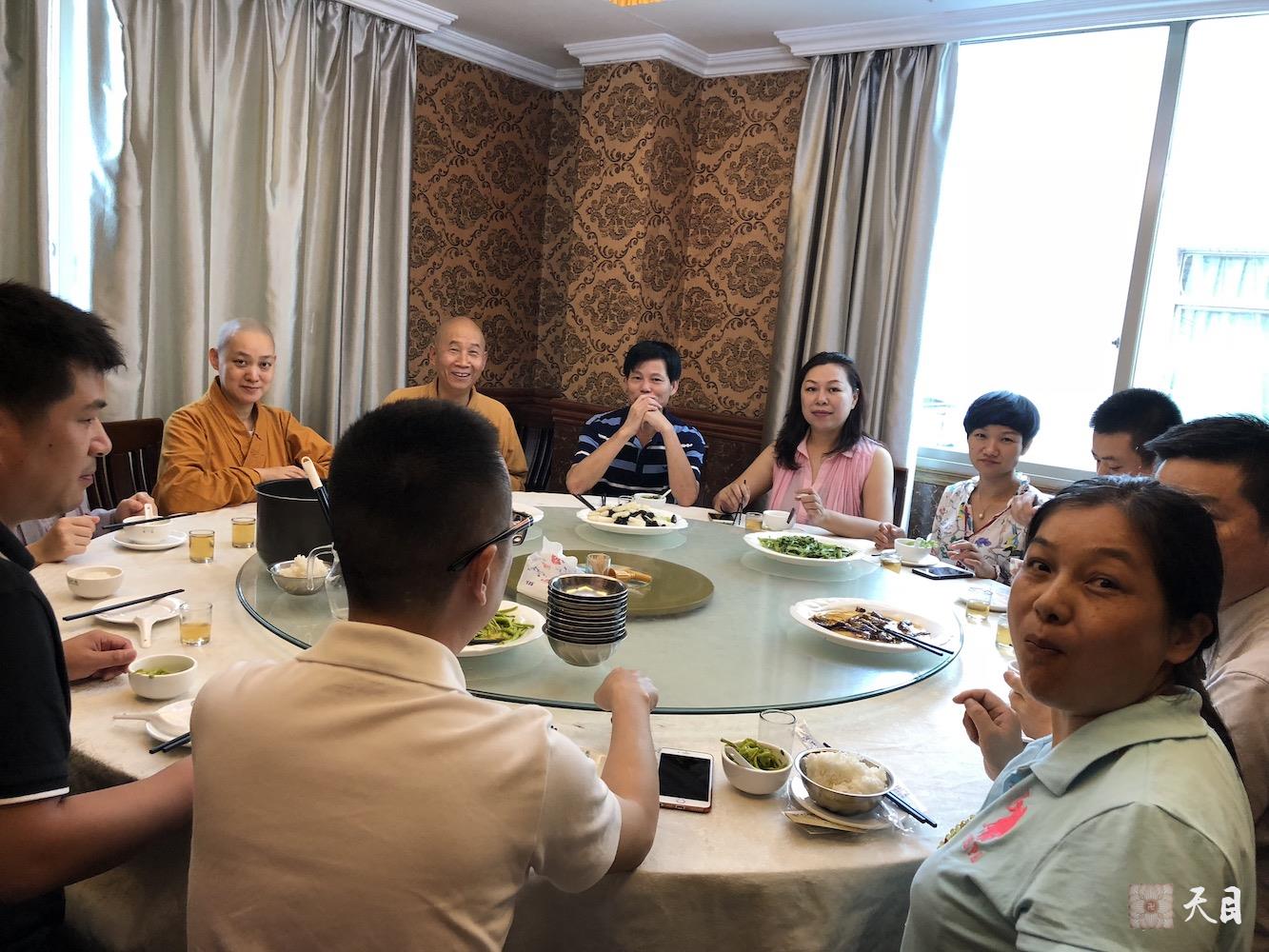 图为恩师圣观法师带领果实法师于途中在福鼎应陈瑞扬局长的供养和弟子们一起吃午饭。