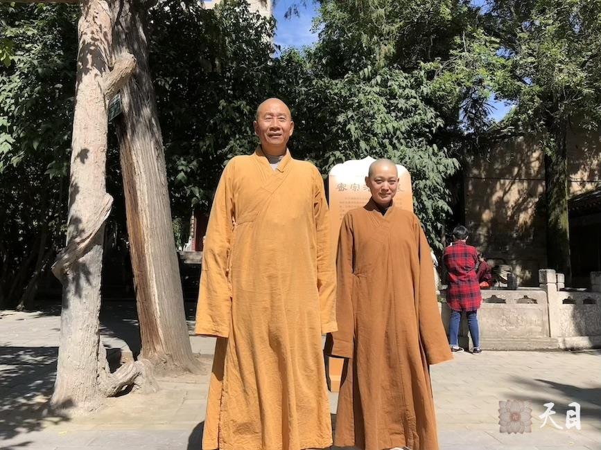 图二:恩师圣观法师带领带领果实法师走向西安大兴善寺密宗法脉展。