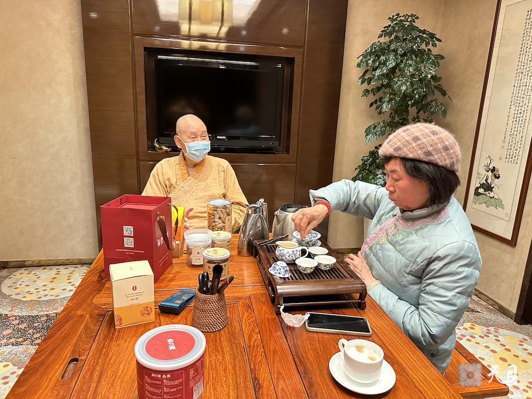 2024年1月25日,恩师圣观法师在中山喜来登道场期间,接见从福建武夷山来中山参展年货节的古岩正韵大红袍茶厂老板余月红居士。去年11月,恩师圣观法师在义乌香格里拉道场期间,余月红居士经温州的常顺居士在义乌森博会结缘来到义乌香格里拉豪华阁行政酒廊想拜见亲近恩师圣观法师,当时恩师身体欠佳无法会客,但是恩师仍然非常慈悲,吩咐了弟子果实法师代恩师接见余月红居士。于是,果实法师和余月红居士相约去年的12月在光之翼深圳JW万豪道场再聚,不巧的是,余月红居士还是在恩师圣观法师离开深圳的第二天才到而因此错过。今儿,余月红居士来中山参展年货节,终于实现拜见亲近恩师圣观法师!愿力无穷!随喜赞叹!