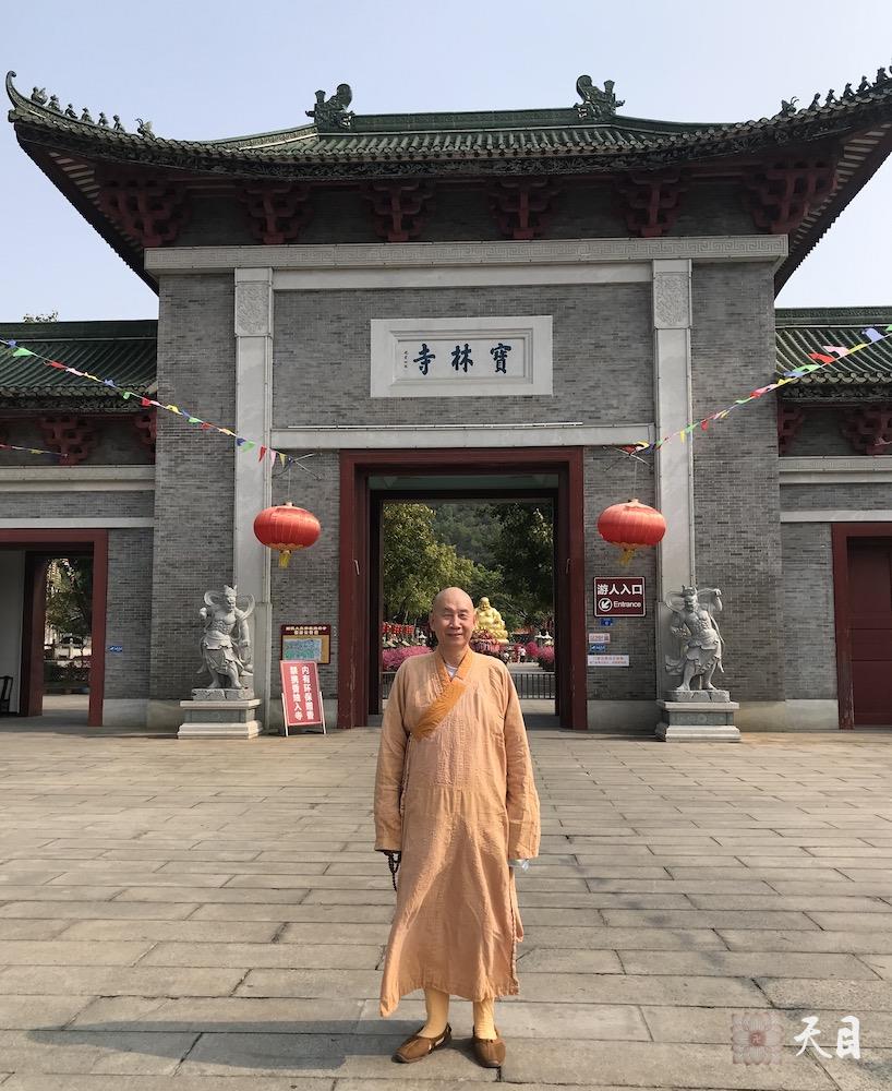 图一:恩师圣观法师在佛山宝林寺山门留影;