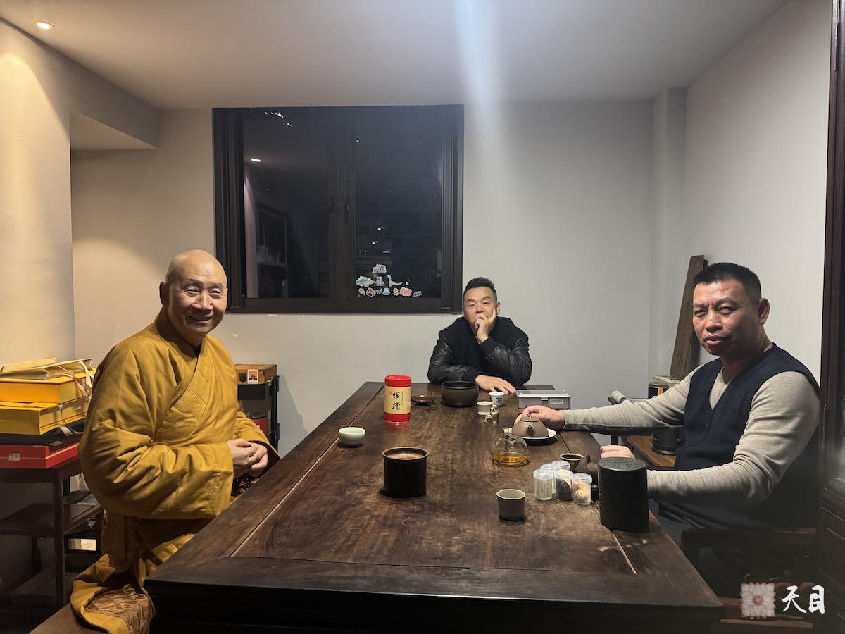 图为恩师圣观法师在温州贞素食茶茶馆云开贞素店给常无居士、常亮居士开示。