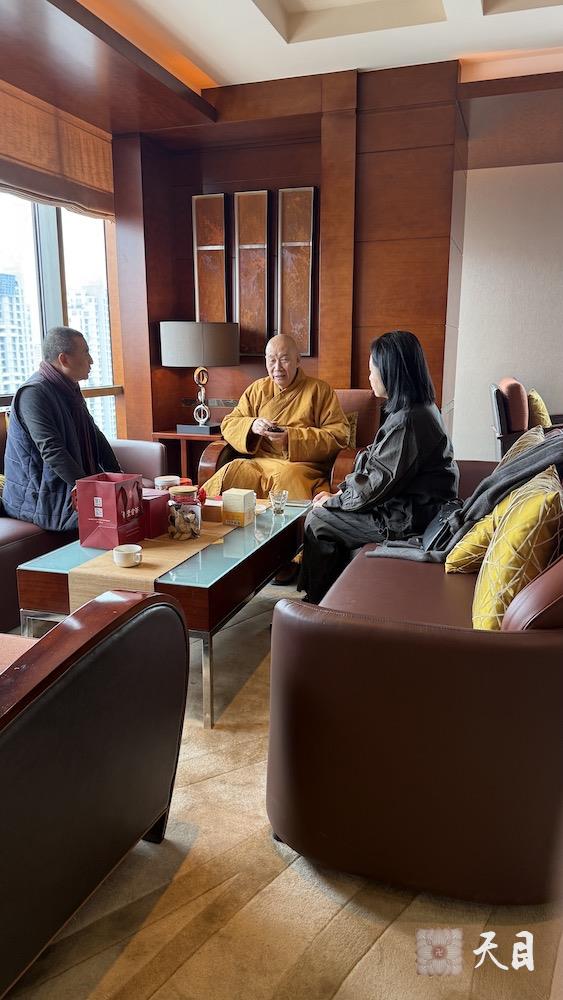 2025年2月6日,正月初九,恩师圣观法师在温州喜来登接见常顺居士、杨枫居士(杭州素食协会会长)、曾居士等信众。