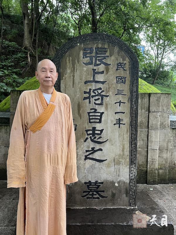 图为恩师圣观法师在张自忠幕“张上将自忠之墓”前留影。