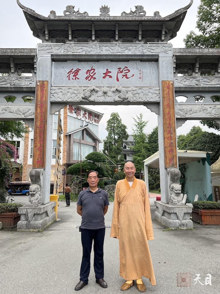 图为恩师圣观法师和徐纪元在徐家大院牌坊前合影。