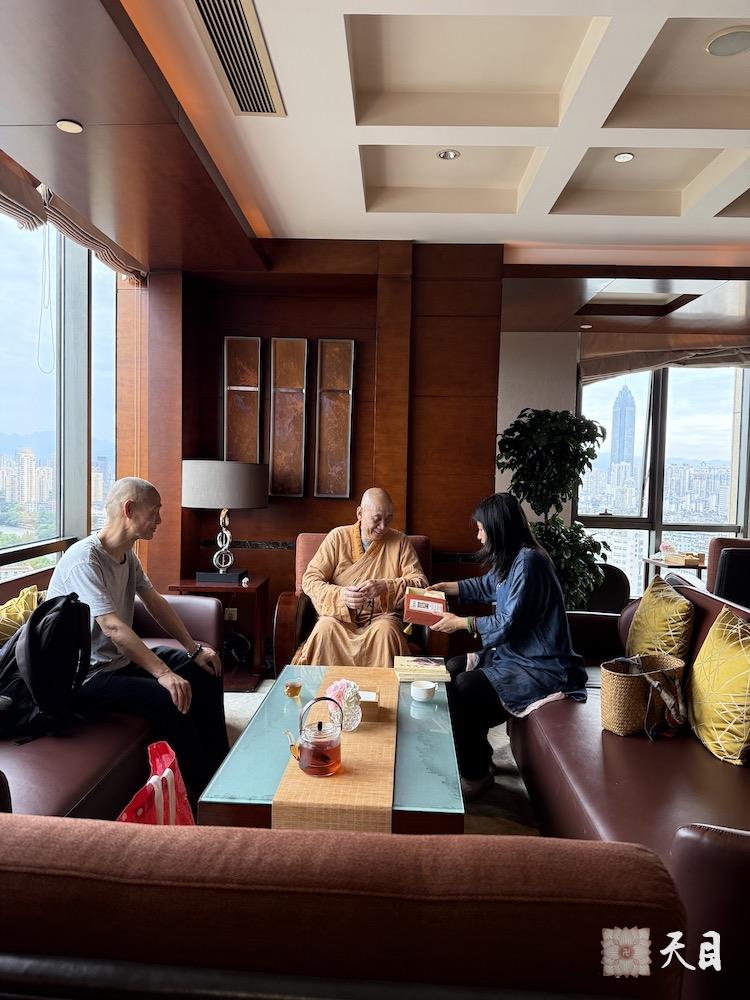 2025年6月5日,恩师圣观法师在温州喜来登道场弘法期间,在温州喜来登行政酒廊接见信众,接受信众供养自制的艾草中药材精油。