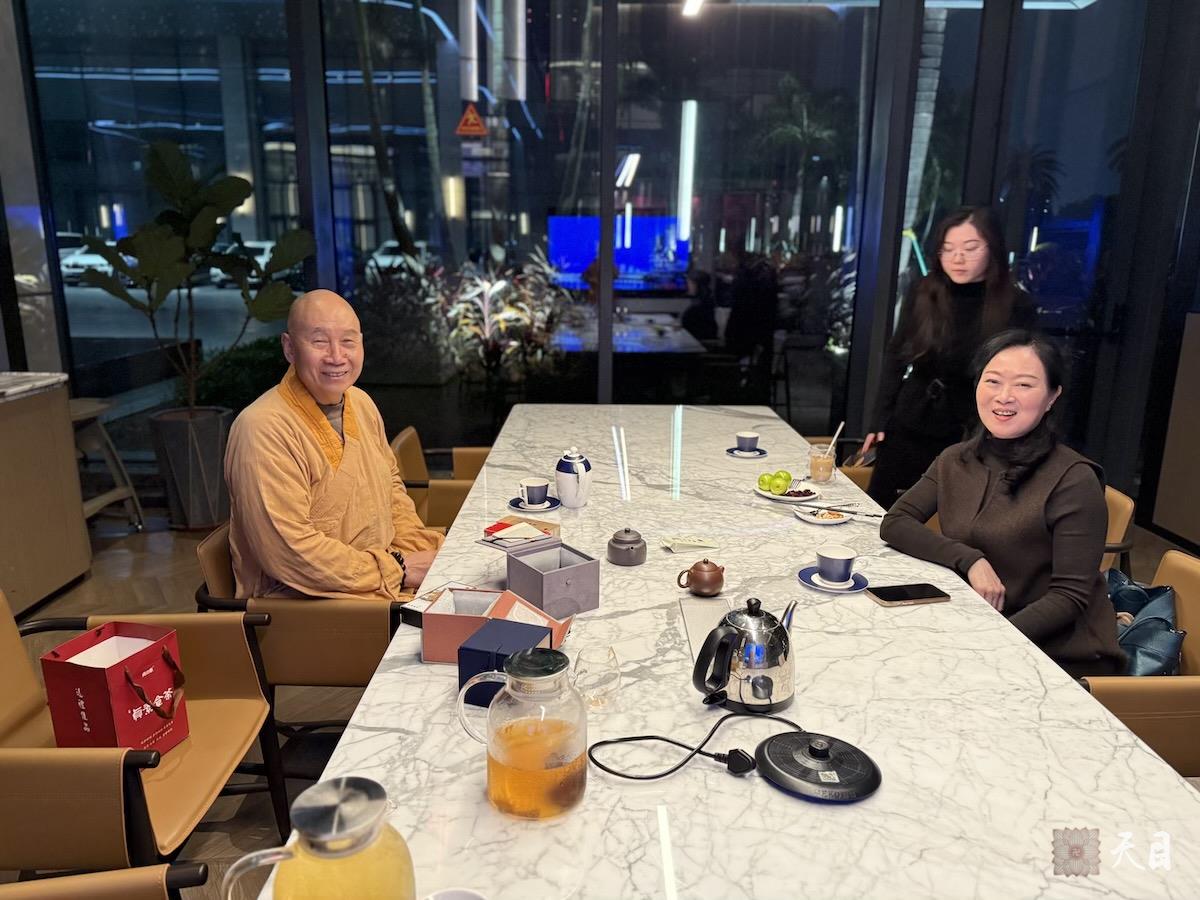 2026年1月30日,恩师圣观法师在揭阳万豪道场弘法期间,接见专程从汕头前来拜见亲近恩师圣观法师的果珍居士、常灯居士。