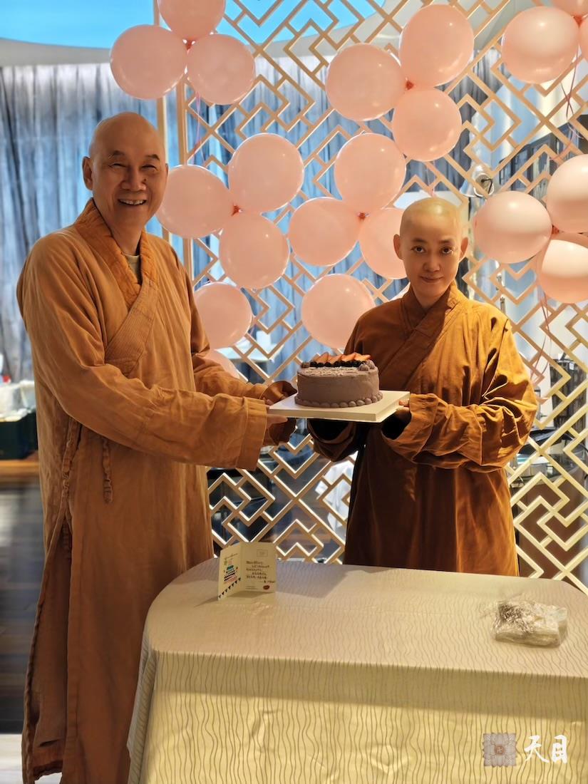 感恩师父!感恩恩师圣观法师加持!果实圆满!感恩厦门艾美的总经理James、房务总监Jasmine、制作纯净素蛋糕的烘焙师Erica和客房经理阿金一同前来给果实法师庆祝生日!