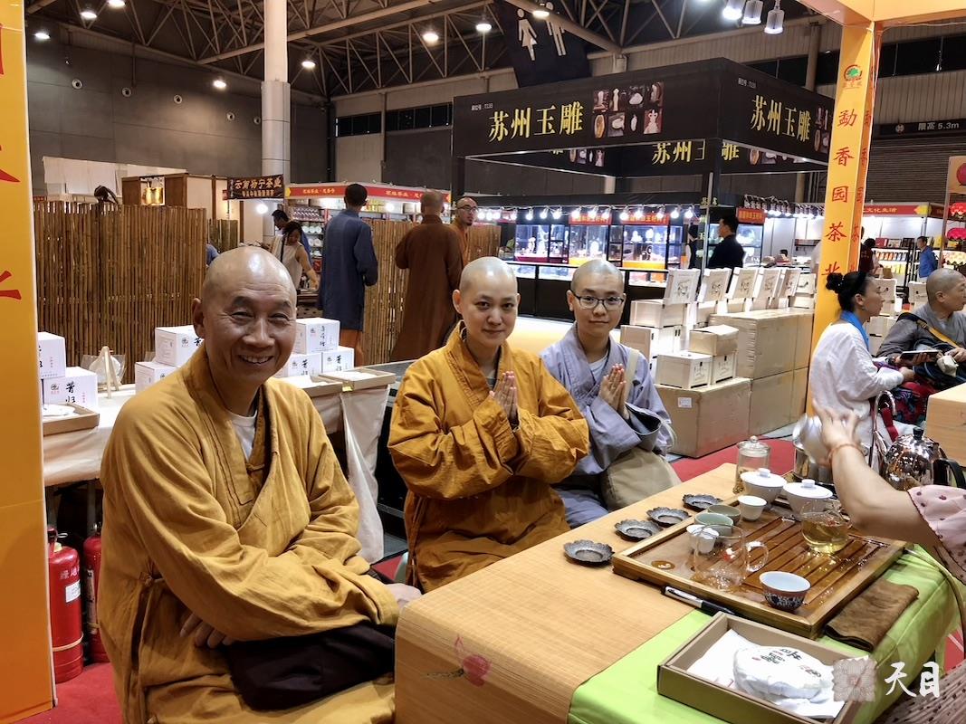 图为恩师圣观法师与果实法师等弟子在展会。