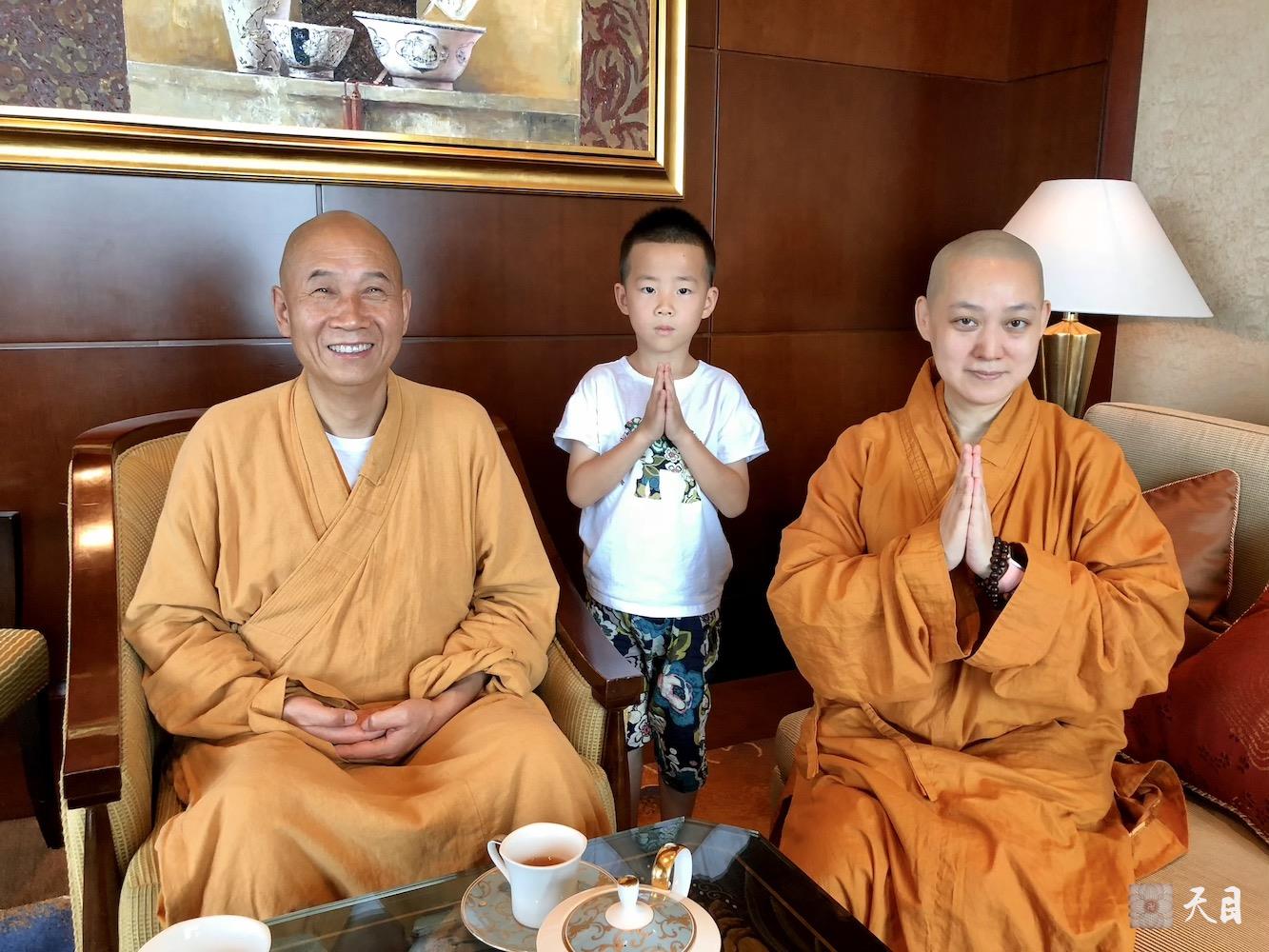 2018年6月30日,恩师圣观法师带领果实法师在温州弘法期间,常江居士前来温州香格里拉豪华阁行政酒廊顶礼亲近恩师圣观法师和果实法师,图为恩师圣观法师、果实法师和常江居士的合影。