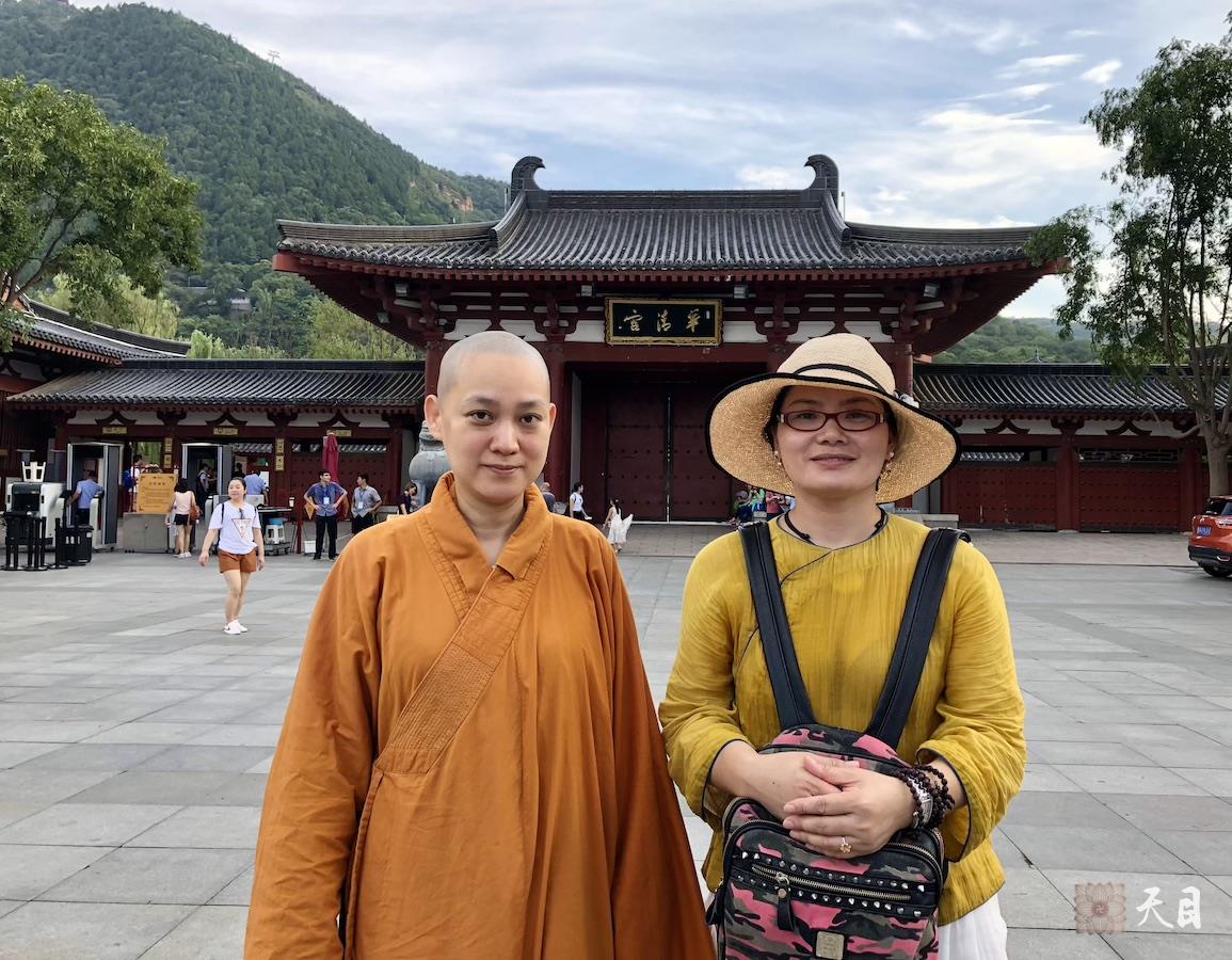 图为果实法师和常珍居士、常彩居士在华清池门前合影。