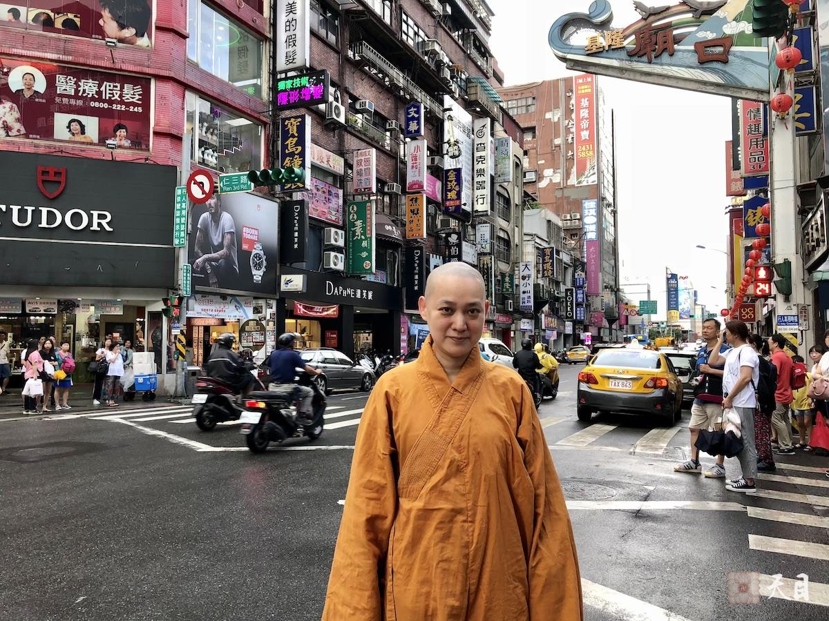 图四:果实法师和果芳居士从台北六福皇宫威斯汀酒店出发时拍的台北街景。