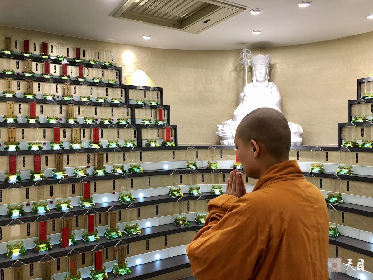 下午,果实法师在果芳居士的护持下来到常景居士的安息地富贵南山纪念中心时,果芳居士的姐姐已早早在此等候了。果芳居士的姐姐是一名基督教徒,但自打第一次见到果实法师时起就没有生分过,一直和常景居士、果芳居士一样热情接待果实法师的。而今,她看到果实法师特意远道而来吊唁,还是和过去一样欢喜,并拿出提前准备好的红包来供养果实法师,她作为基督教徒能和居士一样供养果实法师,太让人非常感动了!然后,她就带着果实法师去“看”常景居士了!当果实法师看到富贵南山的清幽、干净,楼体具备高速电梯和电脑恒温系统保持四季如春,在常景居士所在的佛教信仰区供奉着地藏王菩萨像、西方三圣阿弥陀佛、观音菩萨、大势至菩萨的像,走廊上有极乐世界庄严图的壁画,还有好多面墙都挂着大幅莲花画,一楼大厅则是供奉着地藏王菩萨的大殿,还有非常礼貌的工作人员随时提供专业的服务,......,这一切,俨然极乐世界!太赞叹了!果实法师也彻底放心了!