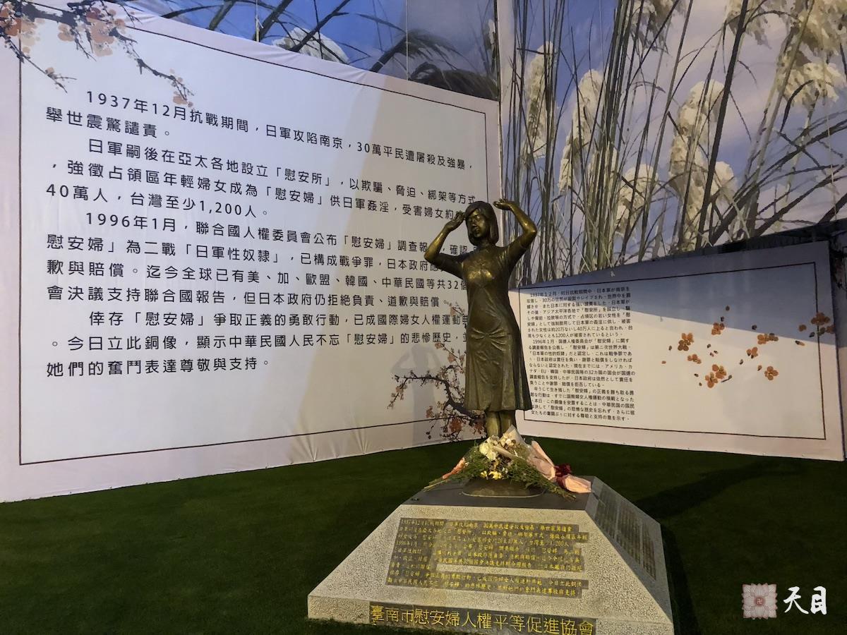 2018年8月22日,果实法师在台南应果芳居士供养慧音素食馆晚餐后,来到林百货对面刚设立不久的 “慰安妇” 铜像前驻足、瞻仰,拍摄,非常赞叹!非常感动!只有在台湾才可以看到 “慰安妇” 像,也只有台湾人民才可以如此自由地声讨日本侵华罪行、强烈要求日本政府就 “慰安妇” 问题进行赔偿和道歉,表达其对日本在台湾长达五十年殖民统治的极度愤慨。